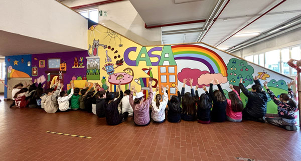 Corso di arte, decorazione, tecniche creative, murales ecc per i bambini della primaria in collaborazione con educatori e professionisti della Cooperativa Andirivieni, Lorenzo Viretto e gli insegnanti